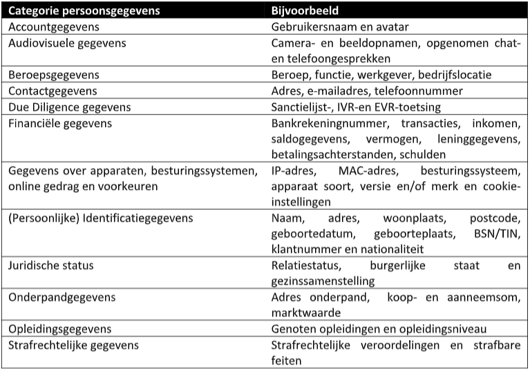 Meestal vragen wij uw naam, adres, e-mailadres, telefoonnummer en geboortedatum. Soms vragen we ook andere gegevens. Zoals financiële gegevens en gegevens over het onderpand bij het aangaan van een hypotheek. Maar ook uw een kopie van uw identificatiebewijs of uw bankrekeningnummer voor het automatisch afschrijven van uw rente. Het verschilt per product en situatie welke gegevens wij van u nodig hebben.